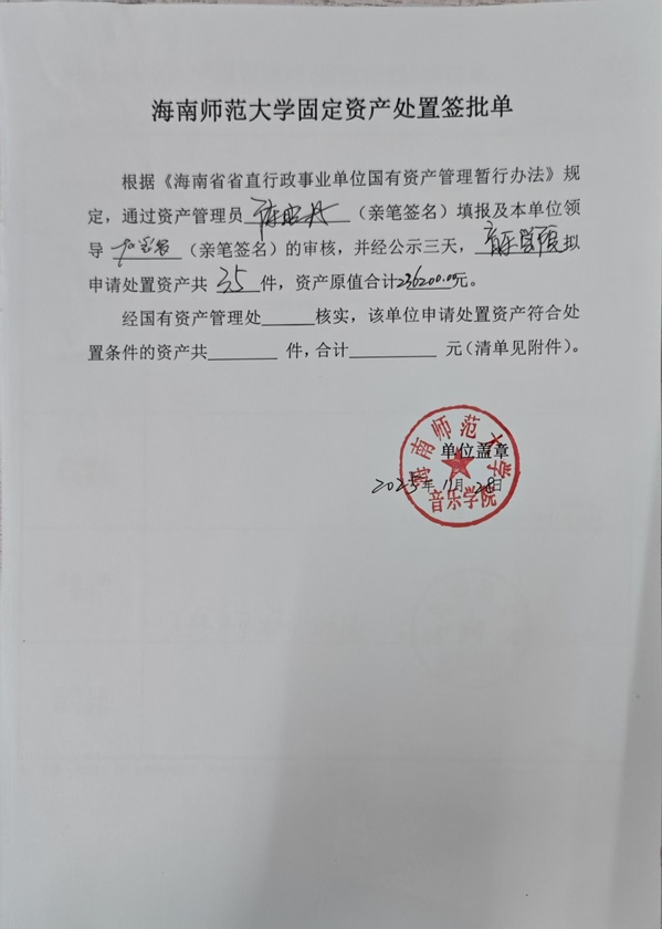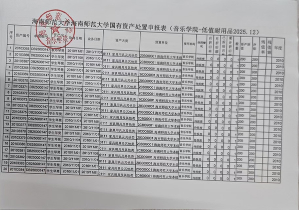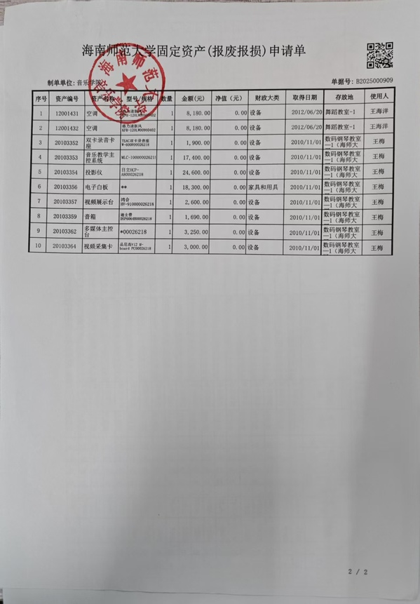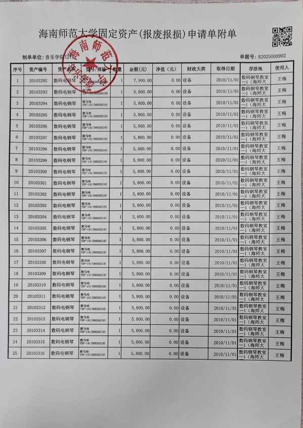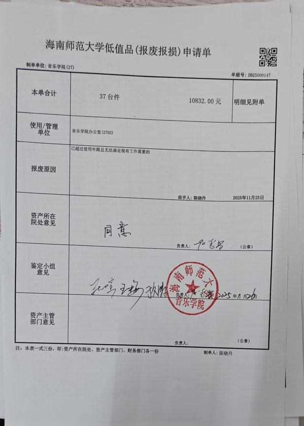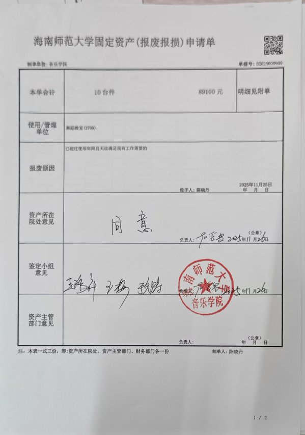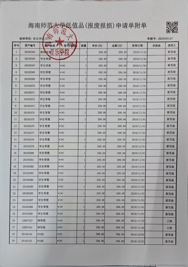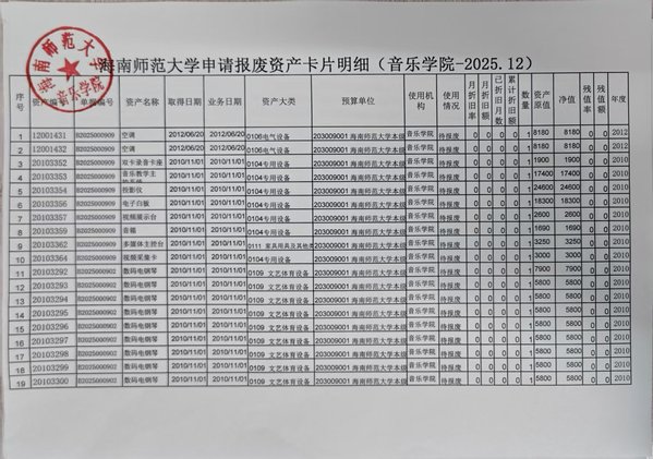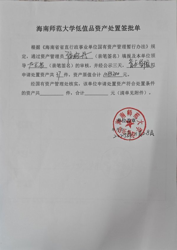海南师范大学固定资产(报废报损)申请单公示