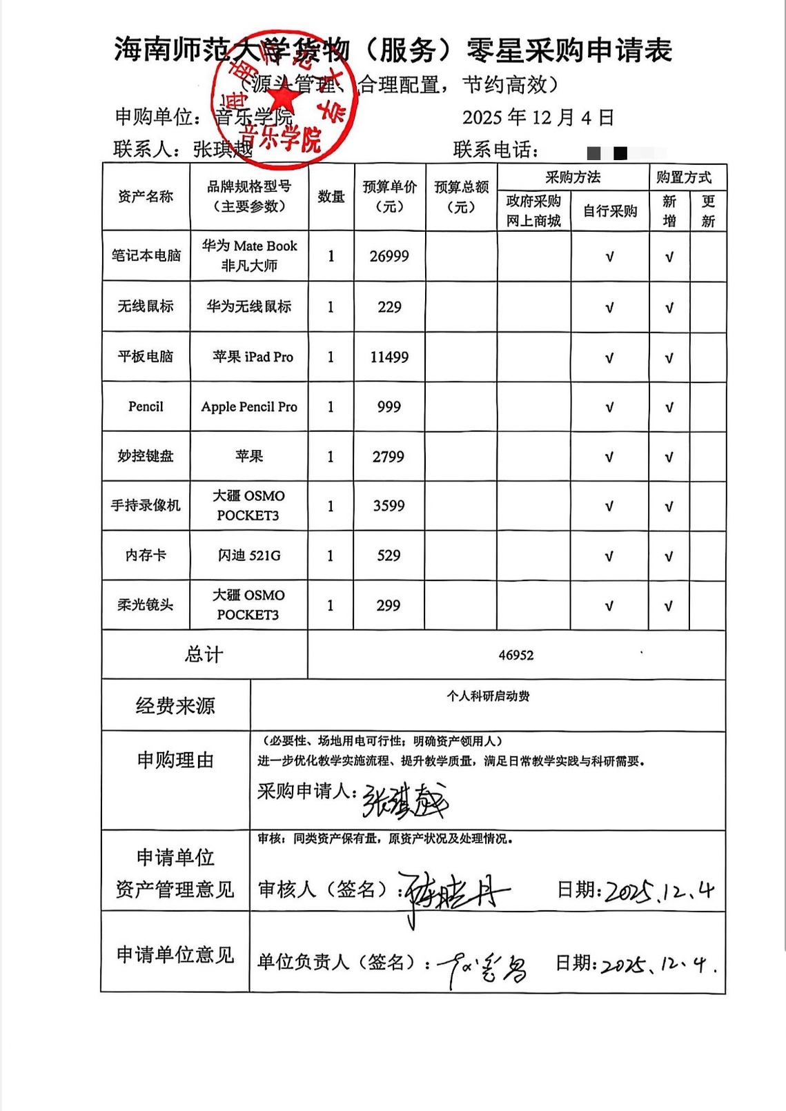 海南师范大学货物(服务)零星采购申请