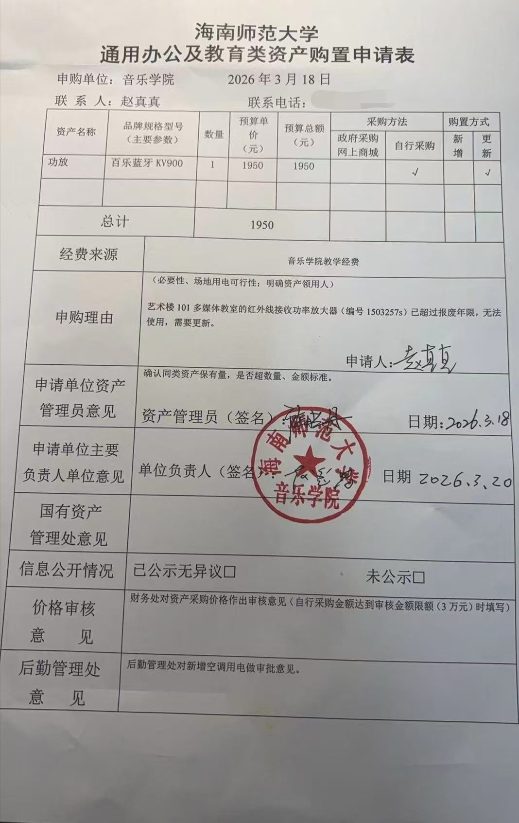 海南师范大学通用办公及教育类资产购置申请表