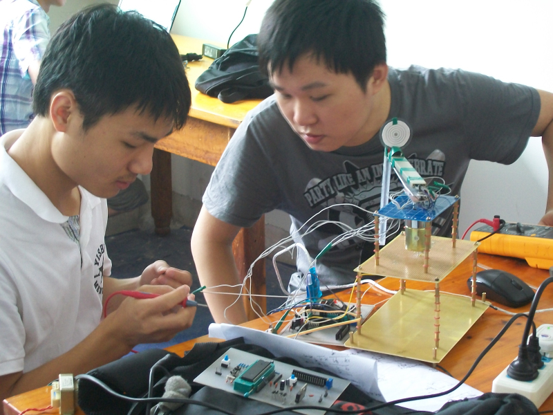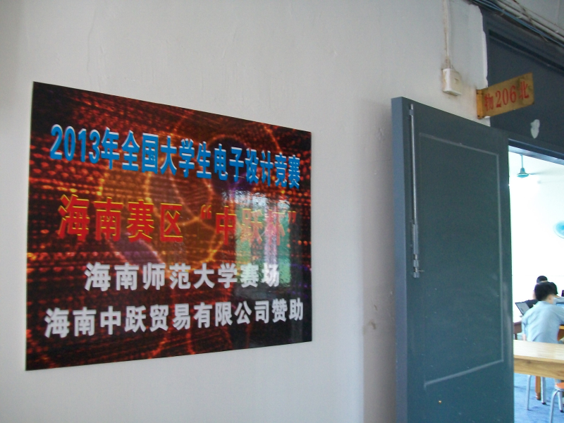 9月4日早上8点,2013年全国大学生电子设计竞赛正式开赛,海南赛区("中跃杯")海南师范大学赛场里,我院经过精心筛选和假期训练选拔出的30支参赛队伍正在奋力拼搏,同学们正在选题、设计方案、领取元器件、制作电路板、焊接、调试,不畏辛苦,干劲十足。物理楼二楼的赛场里,灯火通明,通宵达旦,参赛的同学们正在努力为自己的大学生活写下最值得回忆的一页。