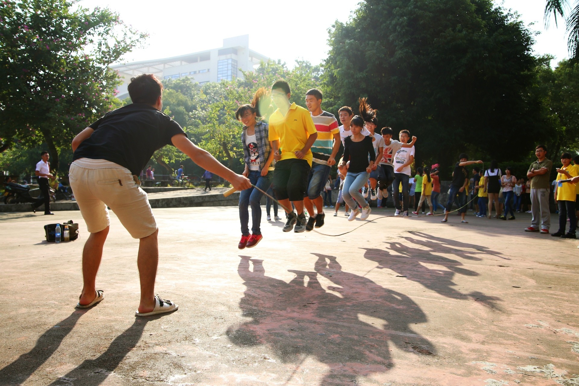 在比赛过程中,各班队员使劲全力,但有些因为配合的不默契,使得状况不断,笑话百出,像13自动化(1)班就因为队员的速度不一致,导致出来时全都撞到了一起。当然也有赢得热烈掌声的时刻,例如在第一轮比赛中,12电子(2)班的队员们配合默契,跳出200分的好成绩;在第二轮比赛中,11自动化(2)班队员衔接熟练,跳出190分的好成绩。