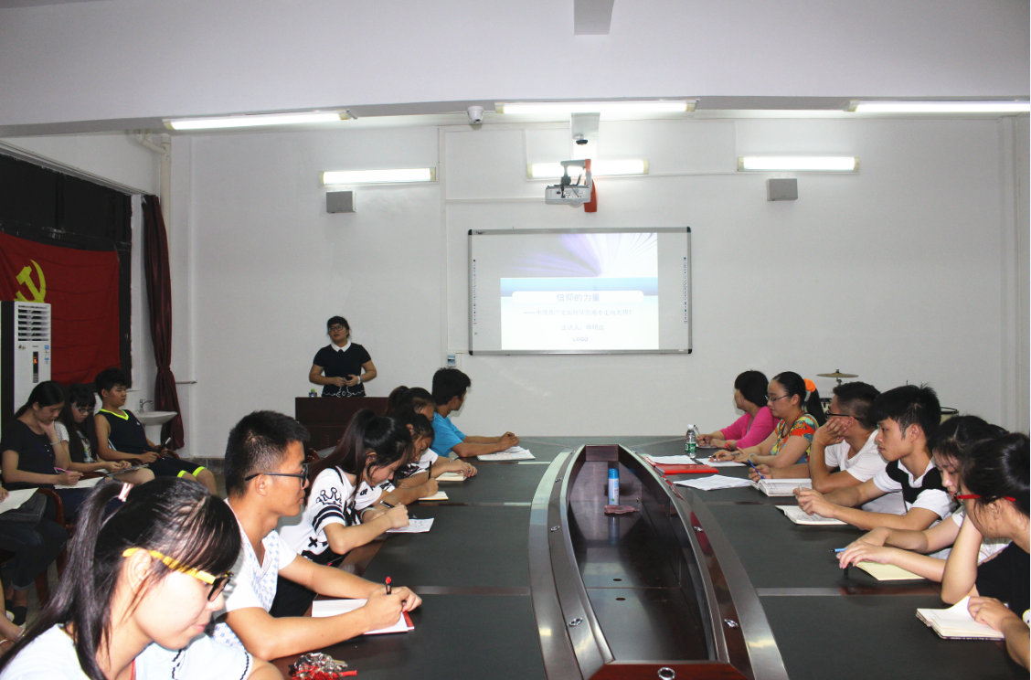6月12日晚,在物理楼二楼学术研讨室,物理与电子工程学院“两学一做”学习教育举行了“讲政治,有信念”专题党课。学院学生第一党支部书记申明远老师主讲,学院全体学生党员和入党重点培养对象参加学习活动。
