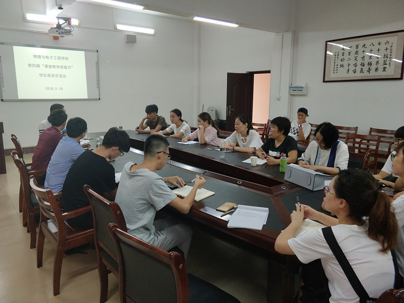 根据学校第四届“课堂教学质量月”活动安排,5月18日下午,我院在物理楼201会议室分别组织召开教师、学生代表座谈会,广泛征求师生们的意见。学院院长彭鸿雁、副院长谢琼涛、物理系系主任姚仲瑜、教研室主任潘孟美和刘晓莹参加了会议。