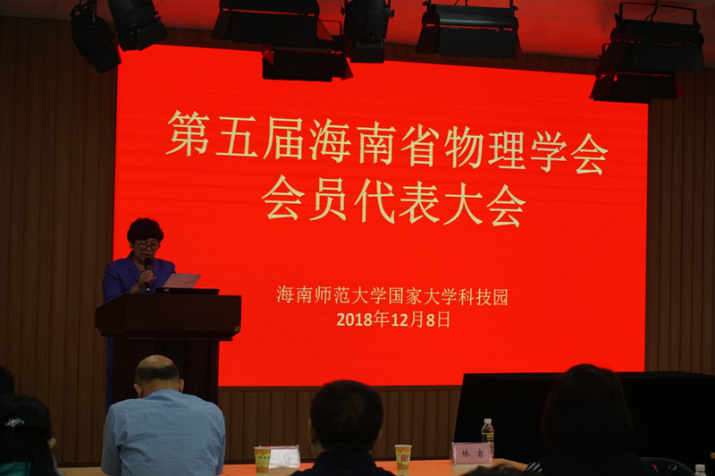 吴丽莎部长致辞,并宣读海南省科学技术协会对于海南省物理学会换届的批复。第四届理事会秘书长、海南师范大学物理与电子工程学院书记林吉同志介绍了海南省物理学会第五次会员代表大会的筹备情况,做了海南省物理学会第四届理事会工作报告、第四届理事会财务报告、海南省物理学会章程修改说明,会员代表在会议上进行了审议和表决。