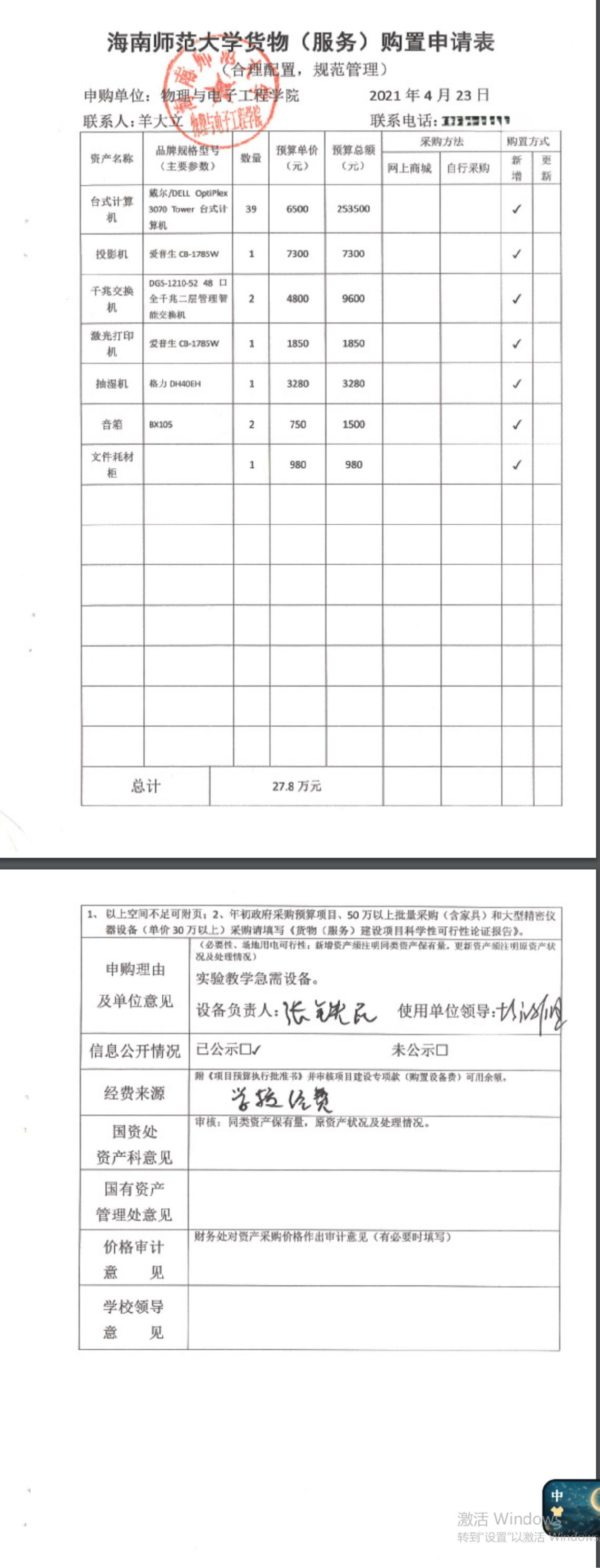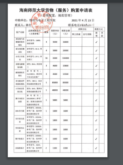 物理与电子工程学院2021年学院采购项目公示