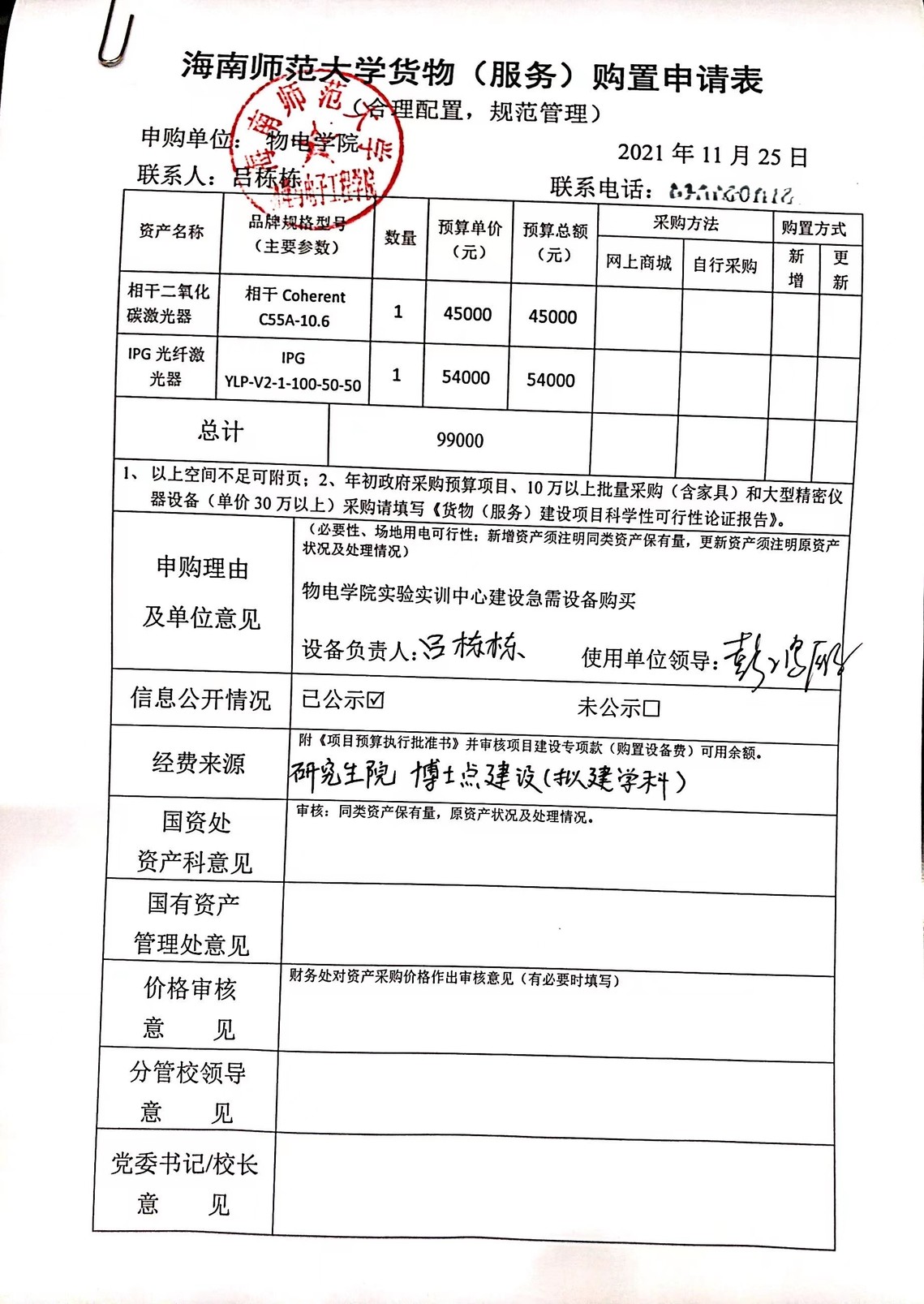 物理与电子工程学院实验实训中心急需设备采购公示如下。公示时间:11月25日至11月27日。