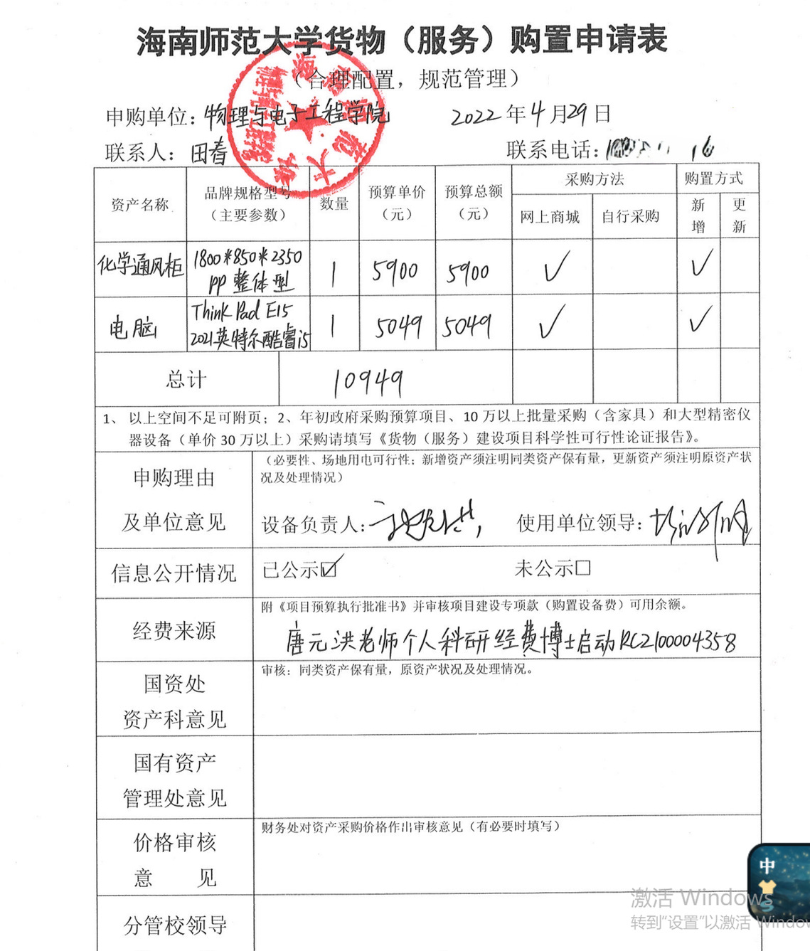 物理与电子工程学院唐元洪老师急需采购设备,公示如下,公示时间:2022年4月29日-5月6日。