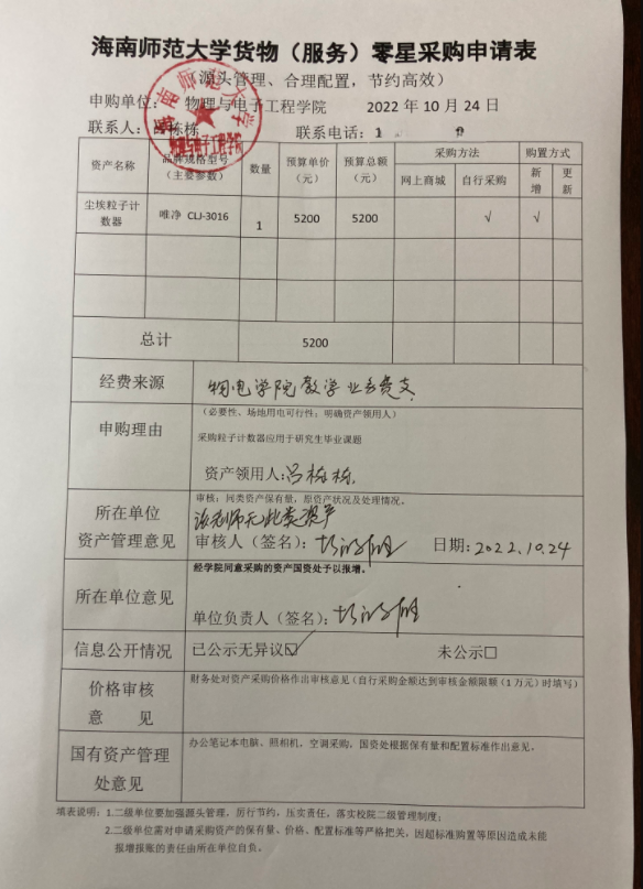 物理与电子工程学院吕栋栋老师急需采购实验室设备,公示如下,公示时间:2022年10月24日-10月27日。