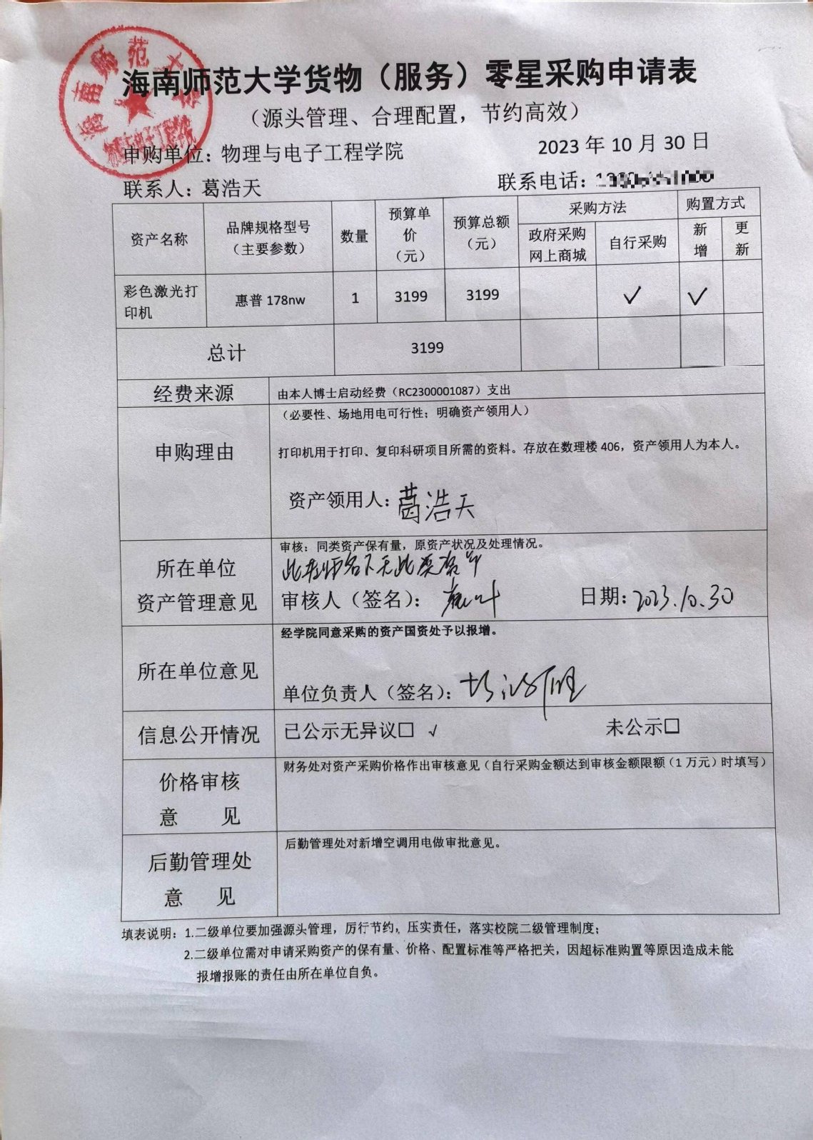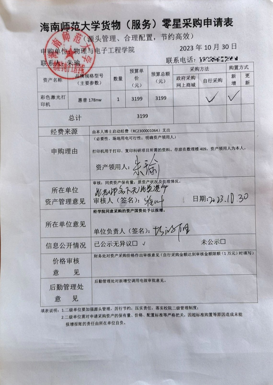 物理与电子工程学院朱瑜、葛浩天老师采购实验室设备,公示如下,公示时间:2023年10月30-11月2日。