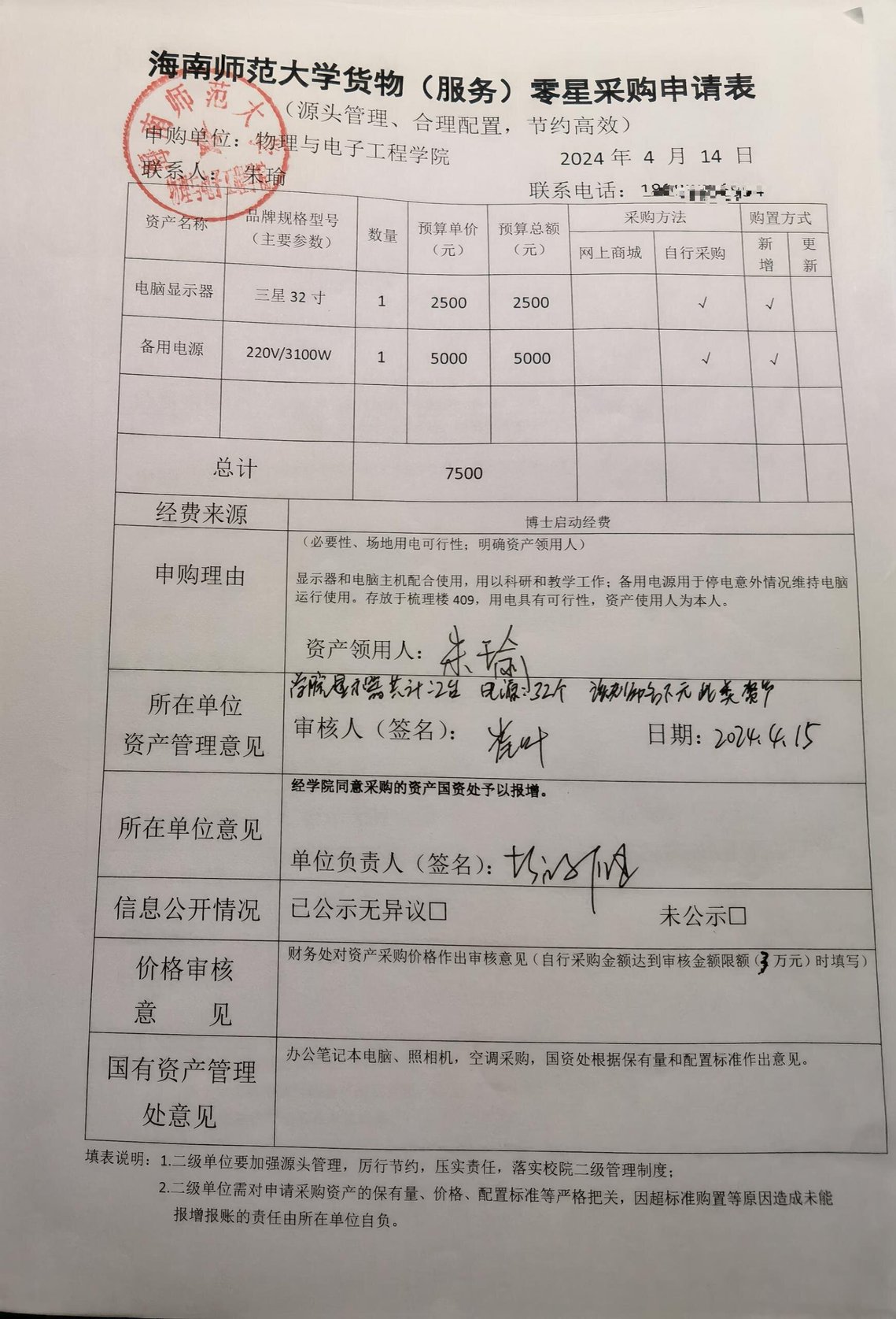 物理与电子工程学院朱瑜购买实验设备,公示如下,公示时间:2024年4月15日-4月18日。