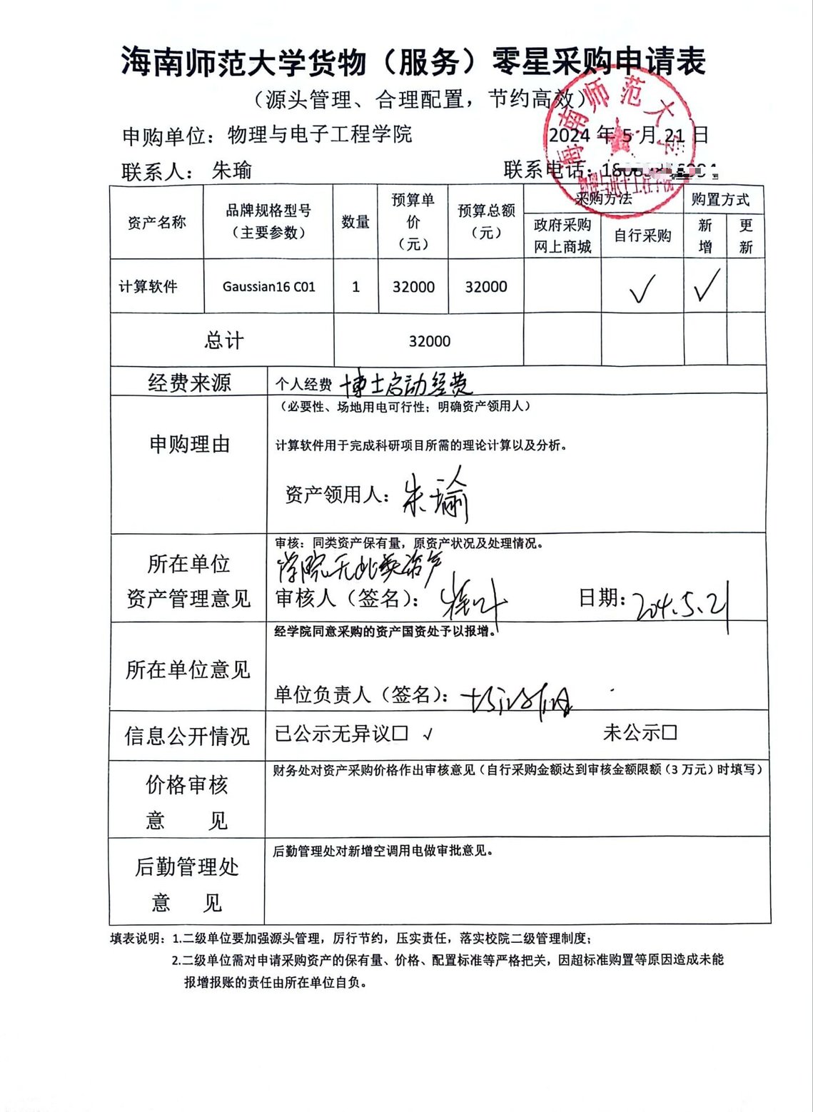 物理与电子工程学院朱瑜购买实验设备,公示如下,公示时间:2024年5月21日-5月24日。