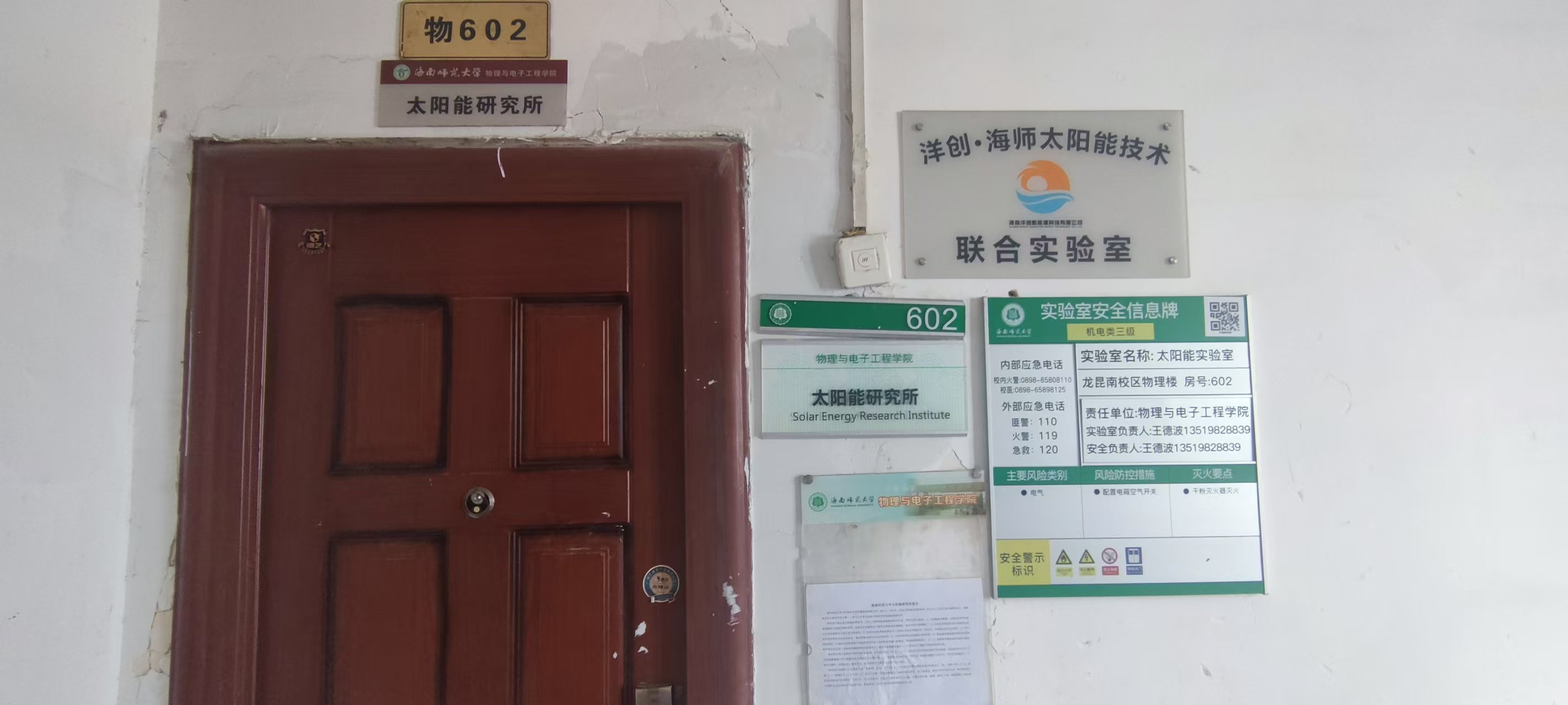 海南师范大学太阳能研究所,成立于1995年,是率属海南师范大学的一所校级研究所,主要服务于海南师范大学二级学科(太阳能利用开发)的学科发展,以及海口市和海南省太阳能学科和产业发展建设。海南师范大学太阳能研究所作为海南省唯一“新能源和太阳能领域”校级科研院所,1996年曾经接待过美国国际阳光电力公司的考察人员,并于1996年参与了西沙永兴岛的太阳能发电、海水淡化、太阳能热水等项目的研究,同时参与设计并指导施工过多个海南省的太阳能热水系统工程。2016年重新任命了所长、副所长人选,研究所各方面的工作得于全面开展。2017年海南师范大学太阳能研究所的太阳能开发实验室获海口市科工信局批准成立海口市太阳能光伏应用技术重点实验室,同时与企业联合创建了机器人联合实验室、海南硬件工程中心、海南太阳能灭虫灯研究中心等。