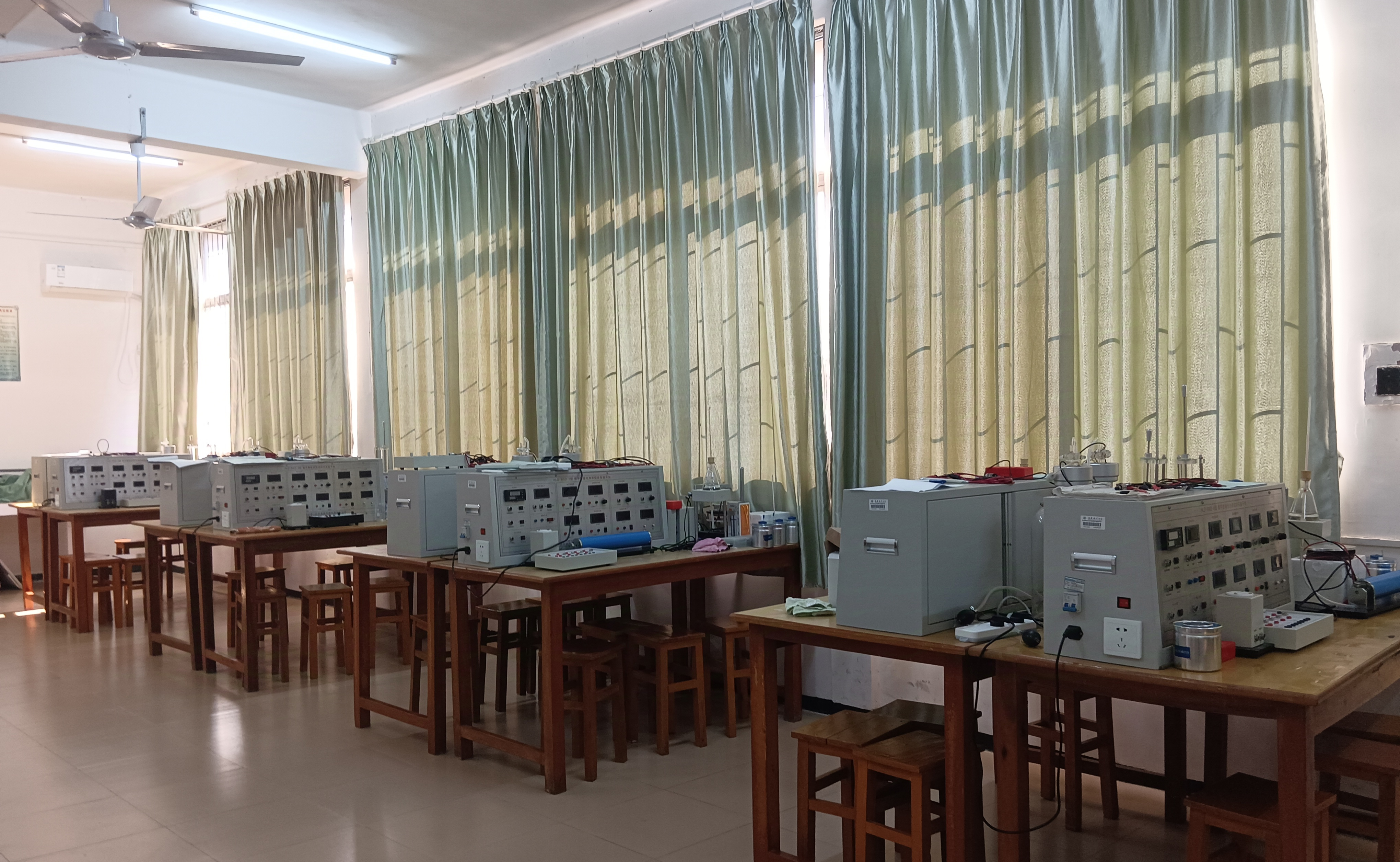 实验室位于物理楼五楼511房间,实验室使用面积90平方米,主要实验仪器有:HLD-RXD-II热学综合实验平台12台,HLD-CLE-C线膨胀系数测定系统1台,FD-SV-D声速测量及超声波测距综合实验仪3套,FD-SWE-II弦线上驻波实验仪3套,液体表面张力系数测定仪3套,惯性秤3套。能完成《普通物理实验I》《普通物理实验II》的全部在开设的热学实验和部分力学实验的教学。