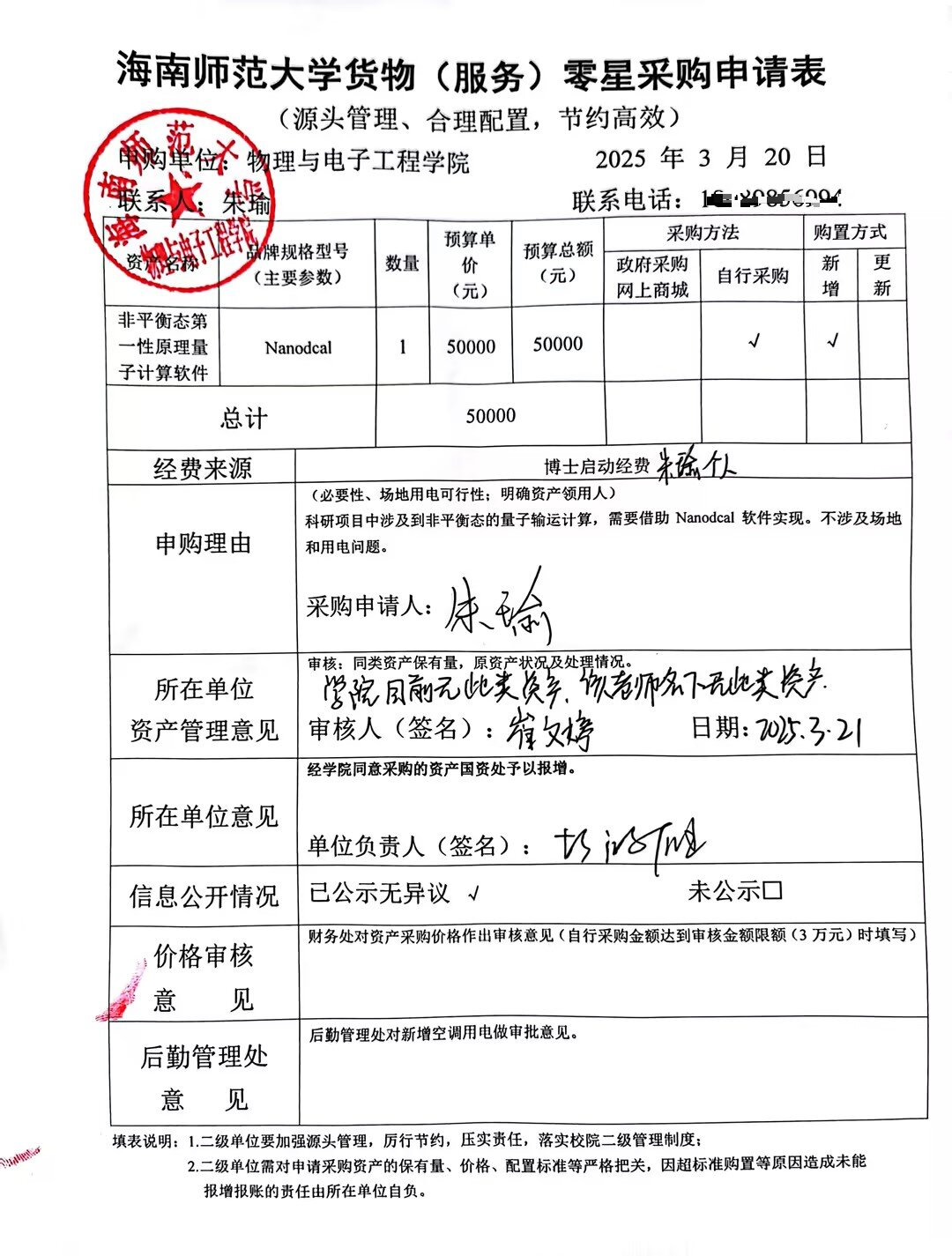 物理与电子工程学院朱瑜购买科研计算软件(单一来源),公示如下,公示时间:2025年3月31日-4月3日。