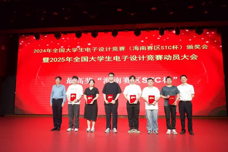 4月12日,2024年全国大学生电子设计竞赛(海南赛区STC杯)颁奖会暨2025年竞赛动员大会在我校龙昆南校区田家炳教育书院报告厅举办。海南赛区组委会、各高校相关部门负责人、获奖师生代表等近200人参加大会。