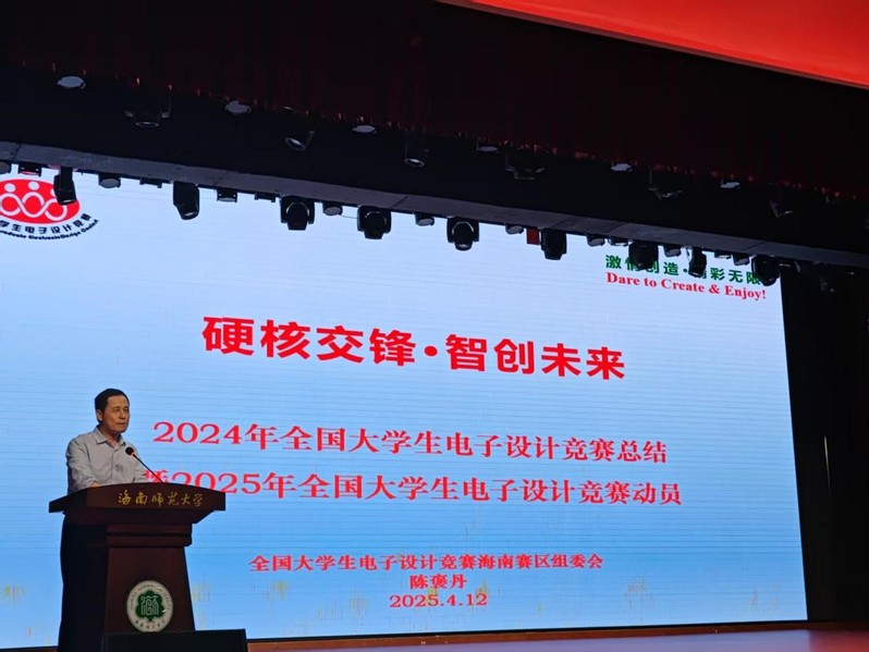 海南赛区专家组组长、海南省电子学会理事长陈褒丹总结2024年全国大学生电子设计竞赛(海南赛区STC杯)具体情况,并就2025年竞赛工作做动员部署。