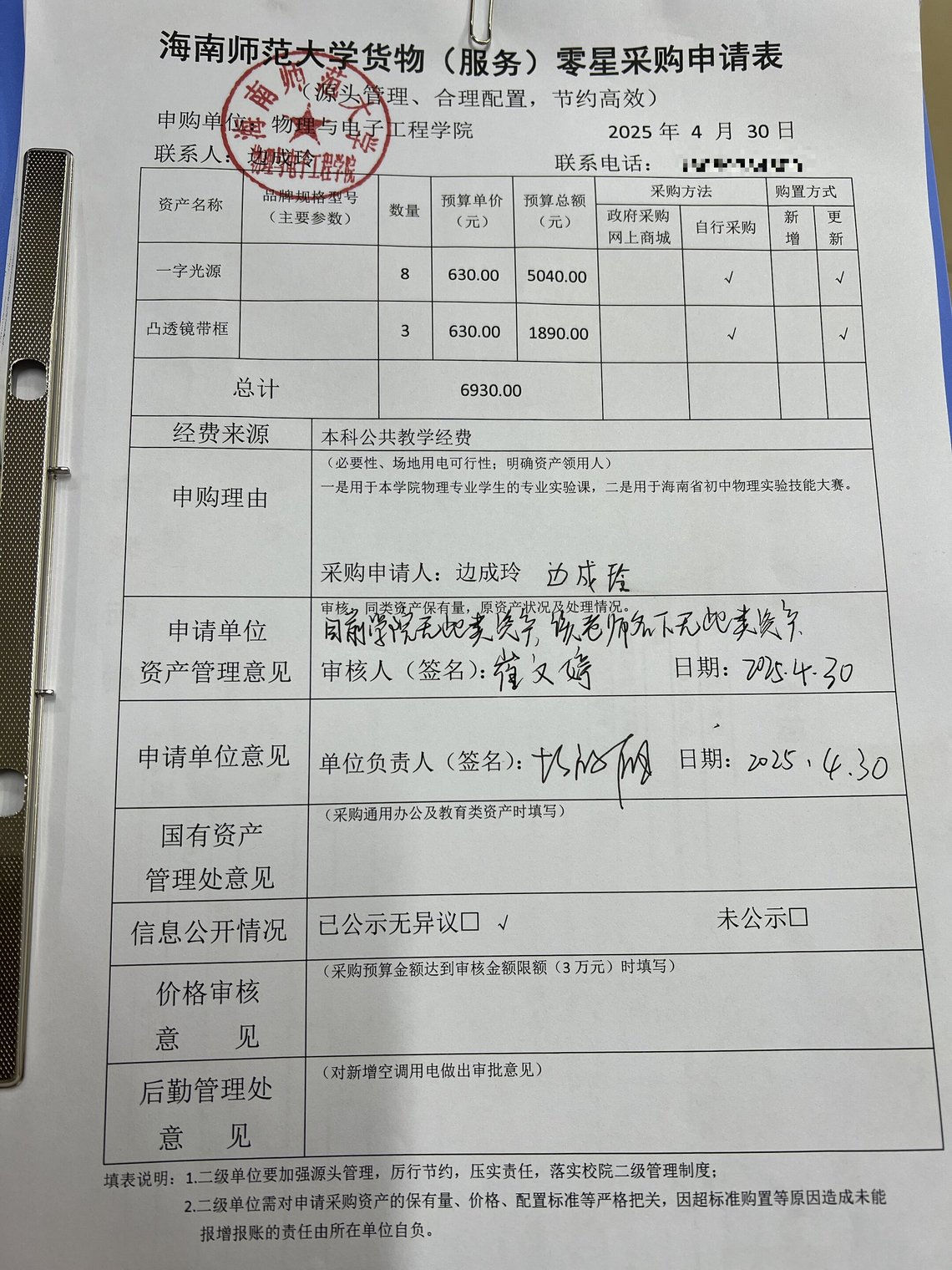 物理与电子工程学院边成玲购买实验设备,公示如下,公示时间:2025年4月30日-5月5日。