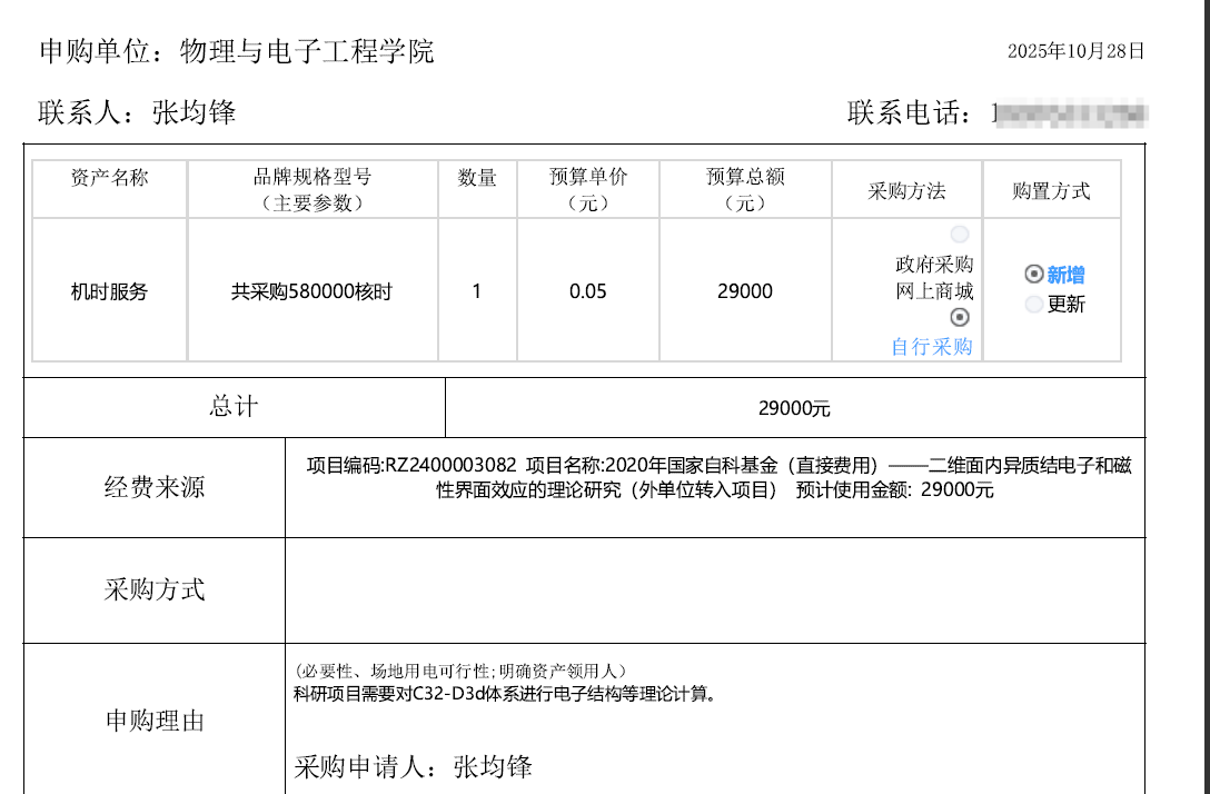 物理与电子工程学院张均锋购买实验设备,公示如下,公示时间:2025年10月29日-11月3日。
