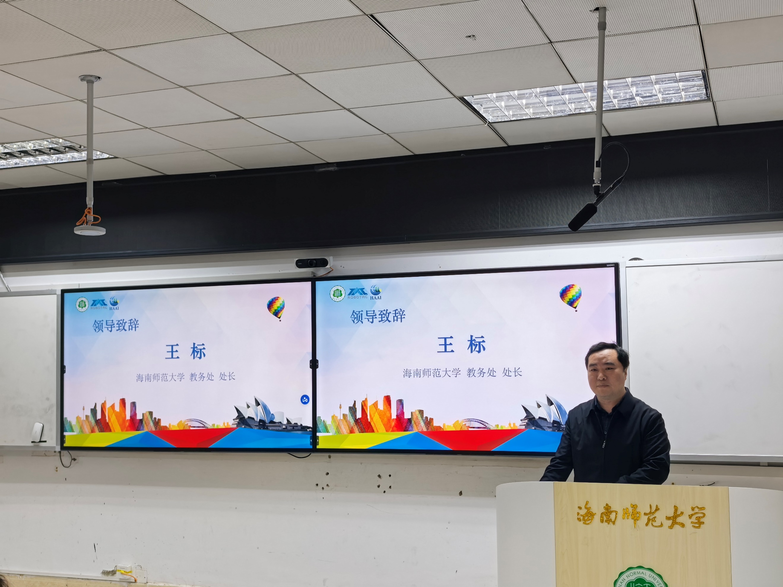 大赛开幕式由海南师范大学教务处处长王标教授对大赛致辞,提出大赛旨在引导高校人工智能及机器人相关专业课程建设,深化教学改革,通过以赛促学、以赛促练,加强学生科研和工程实践能力训练,培养创新思维与协作精神,为适应人工智能及机器人时代新要求储备高素质人才。随后,大赛组委会主任王艺臻教授介绍了全国大学生机器人大赛ROBOTAC赛事情况。产业顾问团代表企业广东派宝机器人有限公司在会场布置了相关产品展示。