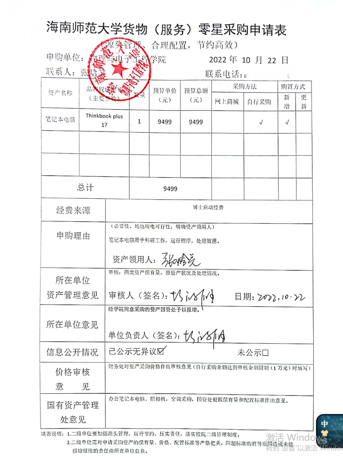物理与电子工程学院张焓笑老师急需采购实验室设备,公示如下,公示时间:2022年10月22日-10月26日。