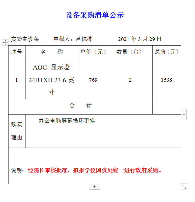 物理与电子工程学院2021年采购材料和设备公示如下,公示时间:4月5日至4月8日。