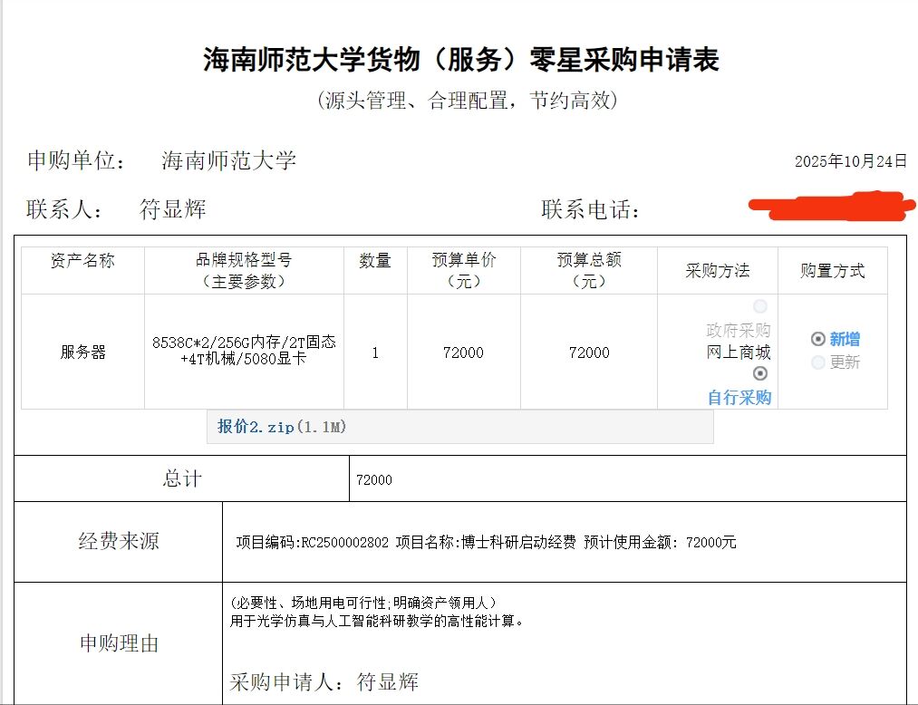 物理与电子工程学院郝旭光购买办公设备,公示如下,公示时间:2025年10月23日-10月27日。
