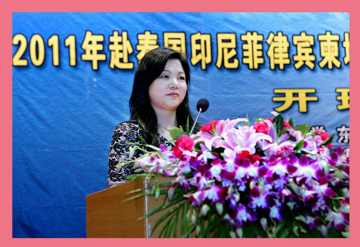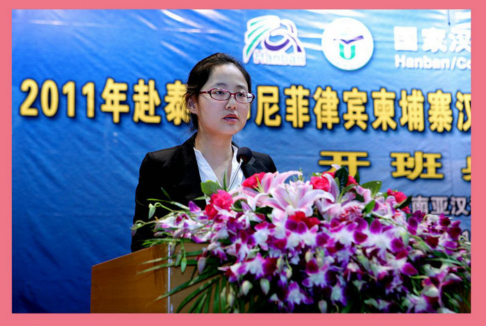 由于此次培训历时仅71天,有着时间短、任务重的特点,海南师范大学国际文化交流学院教师代表孙丹就此做了简要的培训班学习安排发言。学员刘东美代表志愿者做了热情洋溢的发言。最后,典礼在一片热烈的鼓掌声中结束,全体与会领导与学员在田家炳楼前合影留念。