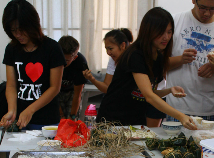 端午节期间,我院组织奖学金生及其他留学生举办“庆端午暨结业聚会”活动,通过体验亲手包粽子的乐趣来让留学生感受端午节这一中国传统节日文化。
