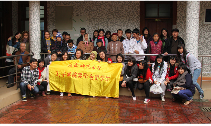 2013年1月4日下午,我校23名孔子学院奖学金生带着节日慰问品到海口市福利院与老人欢度新年。