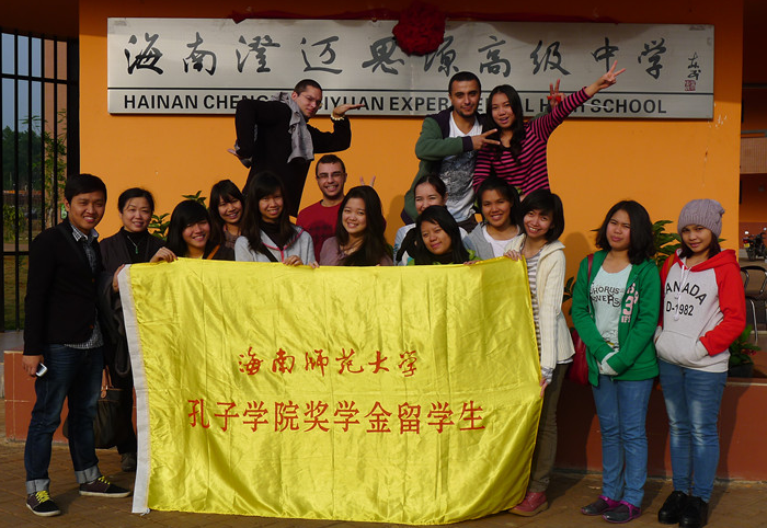 2013年1月8日下午,海南师范大学15名孔子学院奖学金生在刚刚结束期末考试之后,又一次参与爱心活动,来到香港言爱基金会资助的澄迈思源高级中学与高中生进行文化交流活动。