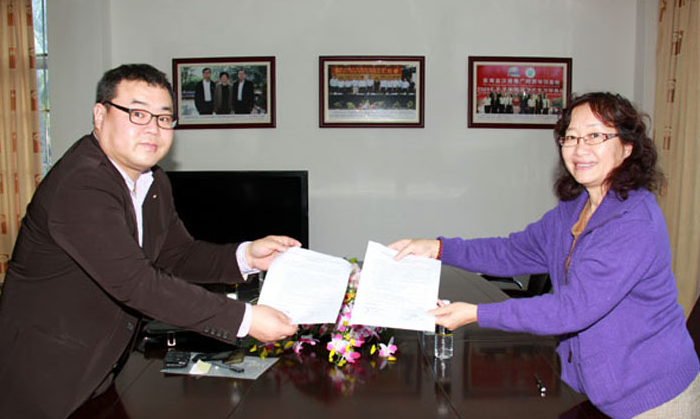 1月16日,韩国永同大学国际交流负责人宋珉镛教授来访我院。秦小怡院长热情接待,与永同大学就韩国留学生派遣问题达成了初步的合作意向。随后,宋教授在我院全光日博士的陪同下参观了基地教学楼、中华文化体验馆、留学生宿舍等处,对于我校的留学生教育硬件设施表示赞赏。 本次是韩国永同大学首次访问我校。永同大学是韩国教育部认可的一所私立大学,这所大学1994年建校,虽然建校时间不太长,但是以特性化教育为特色,在韩国颇有影响力。