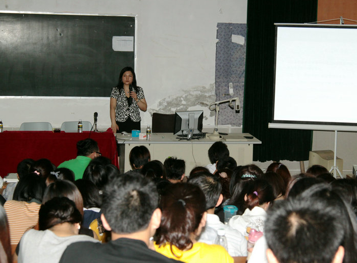 郭主任用幽默生动的语言给学员们介绍了赴泰汉语教师志愿者项目的现状,分析了志愿者在国外可能遇到的困难,总结了目前汉语教师志愿者项目所取得的成绩和作用。最后,她指出汉语教师志愿者应当具备的综合素质,从八大方面作了重要说明并提出了一些宝贵的建议。