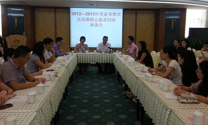 志愿者们介绍了在菲律宾的工作情况、取得的成绩、克服的困难和收获的经验,并针对目前菲律宾汉语教学情况以及志愿者行前培训提出了意见和建议。他们表示,为期一年的汉语教师志愿者经历提高了他们的教学技能,收获了异国友谊,增长了人生阅历,开拓了国际视野。