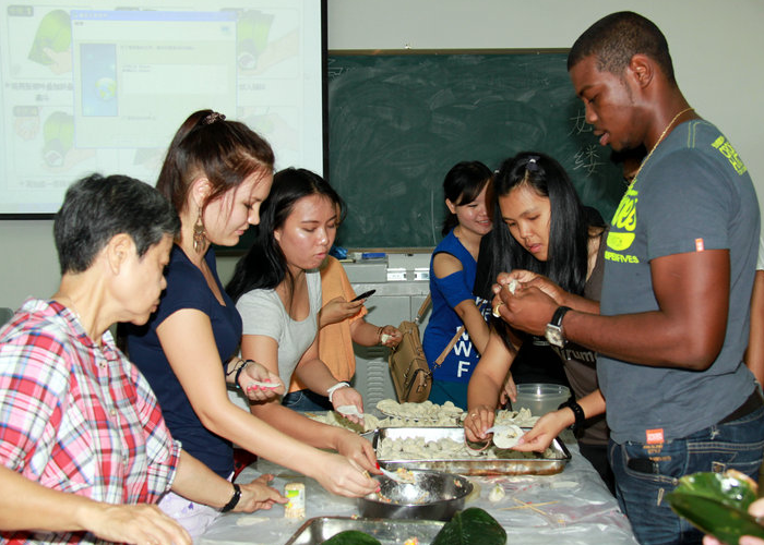 端午节是中国的传统节日,为了让留学生亲身体验中华优秀传统文化之美,在中国过一个难忘的端午节,留学生管理办公室特地组织了这次文化体验活动。留学生对中国传统文化都非常感兴趣,老师教大家包粽子、包饺子时,每个人都全神贯注、一丝不苟地学着。虽然有点儿手忙脚乱,但大家团结合作,互帮互助,终于包出了像模像样的粽子、饺子。留学生中有三个刚从苏里南来的新生,听说有这样有意思的活动,他们也兴致勃勃地加入到了包粽子、包饺子的行列。虽然他们还不会说汉语,但是学习起来却非常认真,看到自己亲手包的粽子、饺子,脸上露出了开心的笑容。