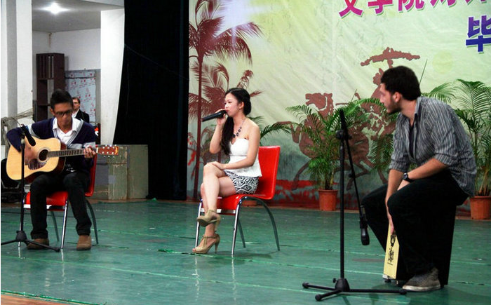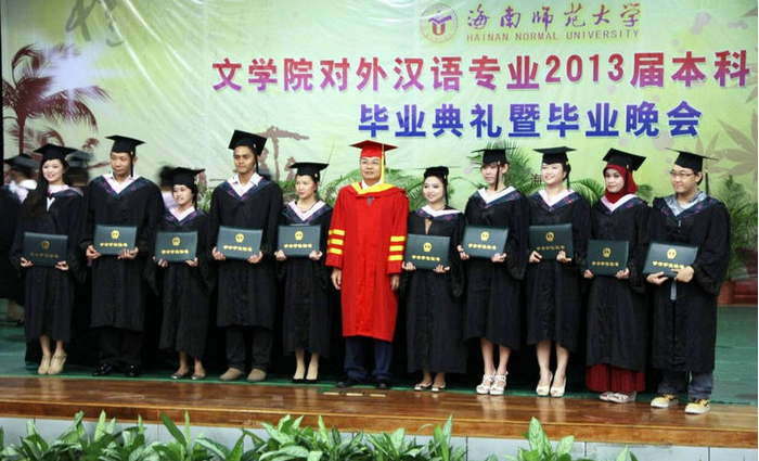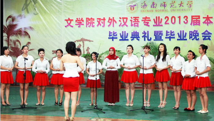 毕业典礼和学位授予仪式结束后,晚会在印尼民族舞蹈《沙曼舞》中拉开序幕,留学生们整齐流畅的动作,独具民族特色的服装,歌声和动作的完美配合博得了观众的热烈掌声。挺进快乐女声海南赛区30强的廖怡娜携搭档为观众带来的独唱《飞机场的10:30》,歌声动人,吉他和手鼓伴奏配合默契;印尼留学生安迪创作的长达半小时的情景剧《水桶王子》讲述了又丑又胖的穷小子和公主之间的纯真爱情,全场的中文交流、极具印尼特色的配乐和舞蹈、独特的反串人物设计、诙谐幽默的语言、中外文化的融合等都是该剧的亮点,当剧中演员们时不时说出网络流行语时,观众总被他们独特的发音逗得捧腹大笑;极具中国风的《中国功夫》和动感十足的舞蹈《歌舞青春》相得益彰,将留学生们诠释的中国传统文化和流行文化一同呈献给观众。