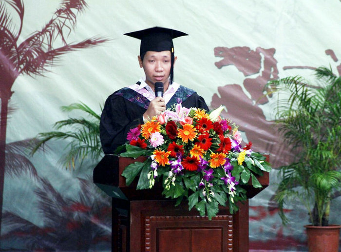 典礼上,杜明娥副校长宣读了《海南师范大学关于授予喜达等26名学生学士学位的决定》,韩长日校长为每位毕业生授予学士学位并致辞。韩长日校长首先代表学校向圆满、顺利完成学业的26名留学生表示热烈的祝贺,向辛勤培育学生们的老师和关心支持学生们成长的学生家长表示衷心的感谢,期待留学生们回国后,向家人和朋友介绍在中国的所见所闻,让世界上更多的人了解中国,了解海南师范大学,做两国文化交流的友好使者;希望留学生们始终发扬矢志不渝、勤奋求学的精神,在以后的事业发展中继续保持对汉语的学习热忱,成为汉语言和中国文化的研究者与传播者。