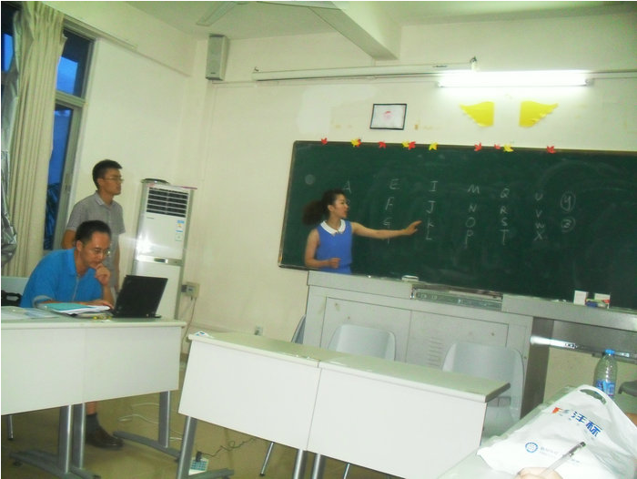 今天是在海南师范大学正式培训的第二天,2013年孔子学院总部/国家汉办外派汉语教师岗前培训的学员们一大早就像军营的士兵们一样按时起床,穿戴整齐,迅速来到海师星光广场习练太极拳,一招一式毫不含糊。最难能可贵的是经过一整天紧张的学习和课堂互动参与,晚上还有一批学子晚餐后不愿回宿舍,直接到502教室继续学习。原来大家得知八班有位留法的美女博士项中凡老师,自动组成了一个法语学习小组,围绕在502教室,认真地听美女老师带领大家入门法语,学员们从字母开始,一字一顿地跟着美女老师的发音,一步一步学习法语,从问候语到数字到了解法语的阴性阳性,感觉法语也是如此的美妙。大家课后意犹未尽,还一直期待着下次课程。大家发现我们培训营其实是一个藏龙卧虎之地,都希望在培训营里尽情地利用人才资源,尽量多地学习各样的知识和特长,相信结业的时候,海师的学员们都会满载而归!祝福大家!(2013年孔子学院总部/国家汉办外派汉语教师岗前培训8班 通讯组供稿)