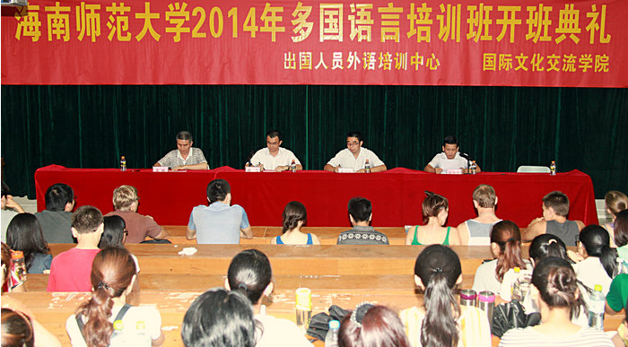 5月14日下午,我校2014年多国语言培训班开班典礼在基地教学楼201教室隆重举行。国际文化交流学院领导班子、教师,以及170多名培训学员参加了开班典礼。典礼由国际文化交流学院陈江副院长主持,出国人员外语培训中心副主任陈崇介致辞。