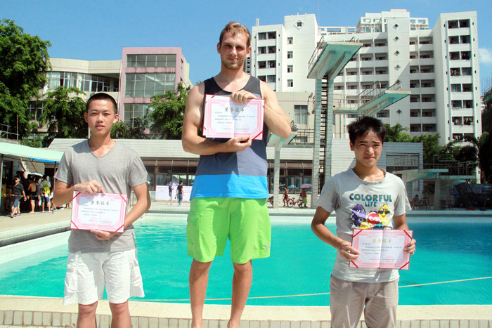 5月24至25日,我校200多名游泳爱好者参加了学校第三届游泳比赛。我院6名国际学生也积极参与,他们在比赛中奋勇争先,敢拼敢搏,表现不俗,获得了乙组团体总分第三的骄人成绩。