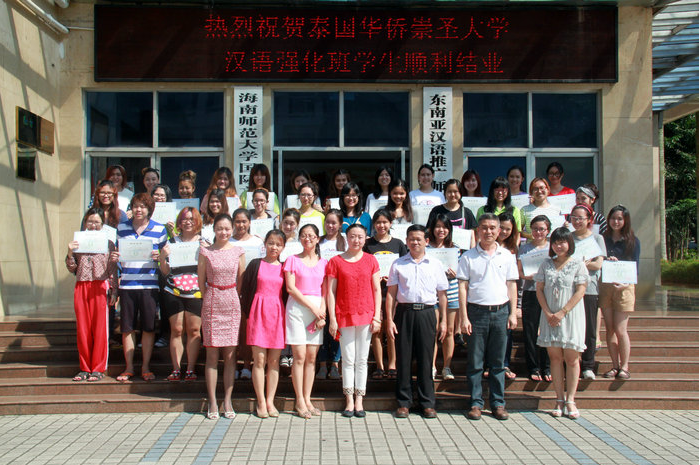 2014年5月23日下午,2013级泰国华侨崇圣大学汉语强化班结业典礼在基地教学楼203教室顺利举行。学院吴椿副书记、耿娟副院长及任课教师出席了典礼,他们向学生们表示祝贺,并为他们颁发了结业证书。