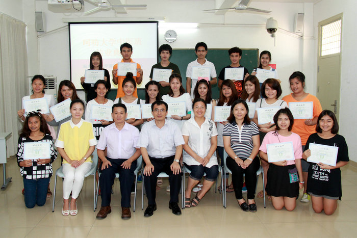 2014年6月27日下午,泰国呵叻大学汉语强化班结业典礼在基地教学楼203教室顺利举行。学院领导陈江副院长、陈崇介副主任及任课教师出席了典礼。陈崇介副主任向学生们顺利结业表示祝贺,同时希望大家回到泰国后继续努力学习汉语。陈江副院长亲切询问了大家对学院教育工作的建议,并为学生们颁发了结业证书。