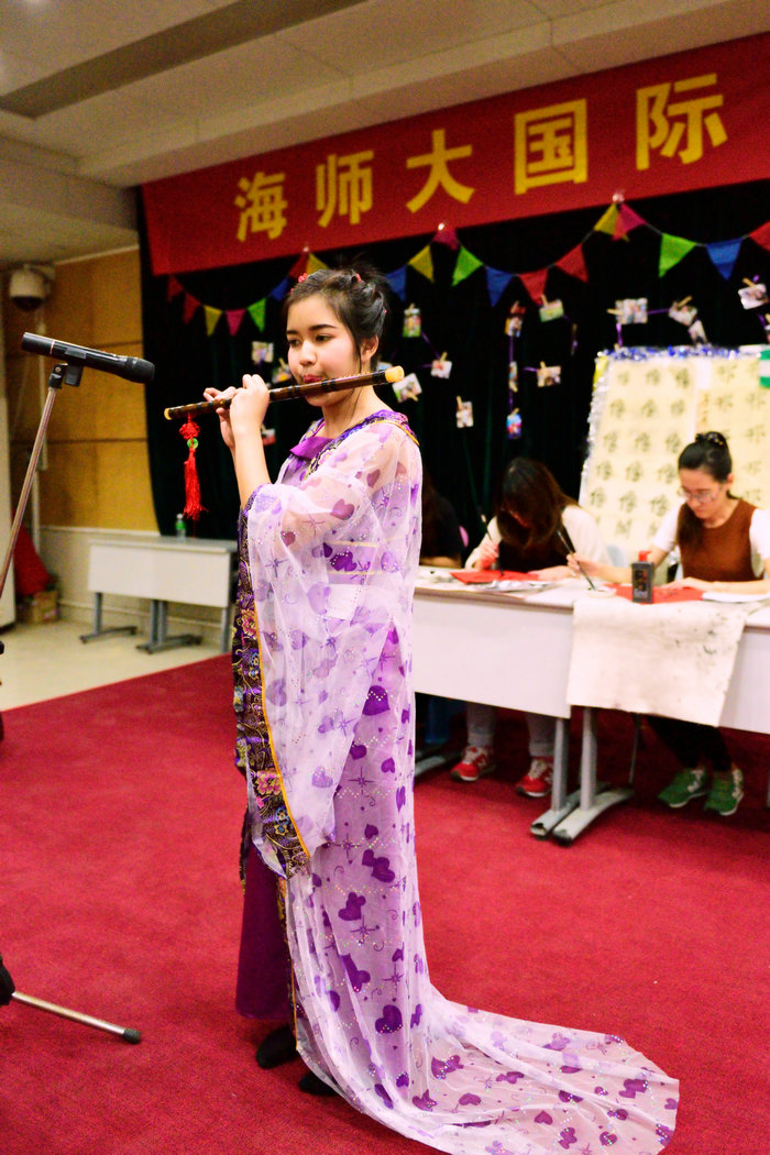 晚会节目以不同“国际教室”学习成果为主题进行编排,乐器教室和书画教室、太极教室学生的表演都给大家留下了深刻的印象,国际学生在一学期的学习中,可以将中国传统文化演绎得如此精彩,这和国际学生的辛勤努力、“国际教室”志愿者们的无私付出是分不开的。