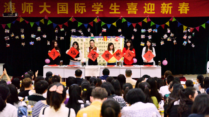 2015年1月6日晚,国际学生迎新春晚会暨“国际教室”成果汇报展示会在我院隆重举行。