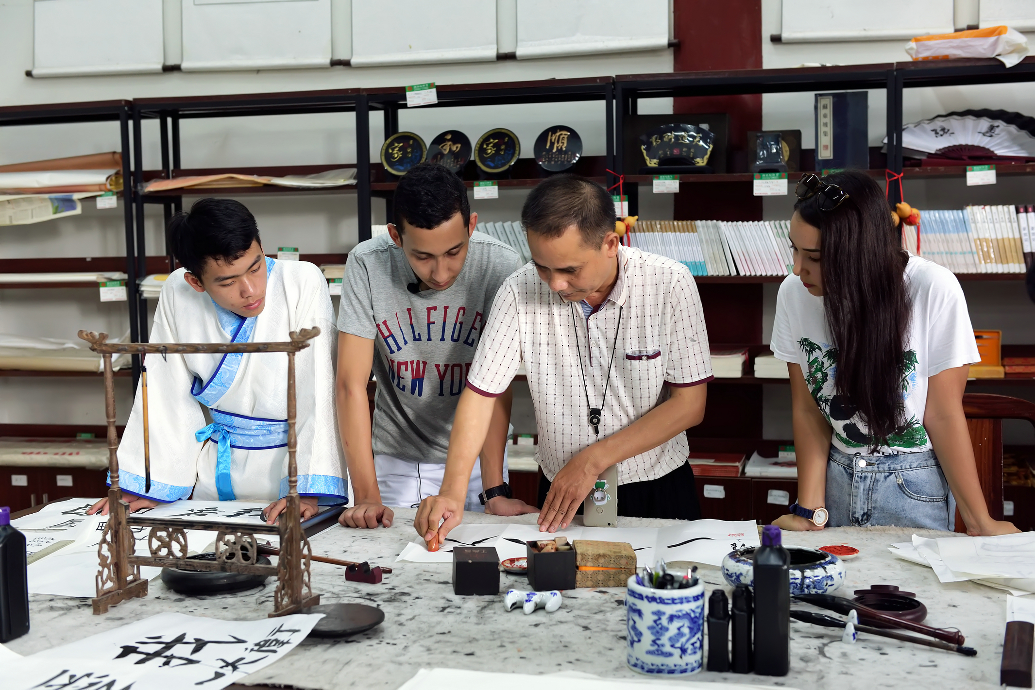 在东坡书院练习书法