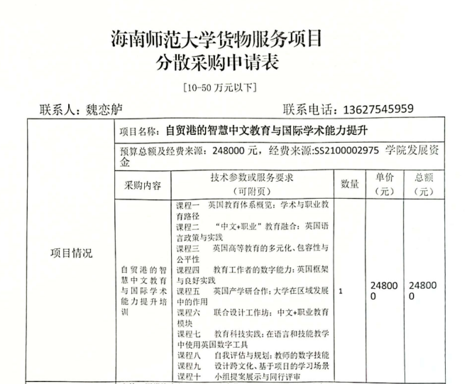 根据学院2025年度“人才建功自贸港”行动项目任务要求,须采购自贸港的智慧中文教育与国际学术能力提升培训。经费来源为学院发展资金。
