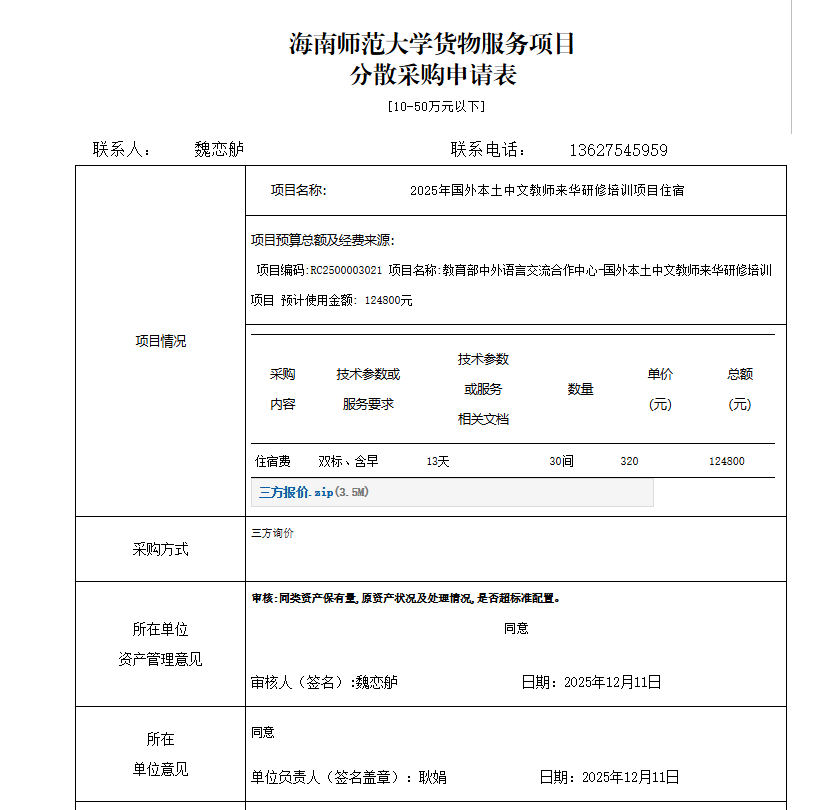 我校承办教育部中外语言交流合作中心2025年国外本土中文教师来华研修培训项目。现对培训学员住宿进行采购公示。经费来源为2025年国外本土中文教师来华研修培训项目专项经费。