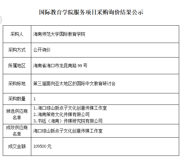 第三届面向亚太地区的国际中文教育研讨会询价结果公示